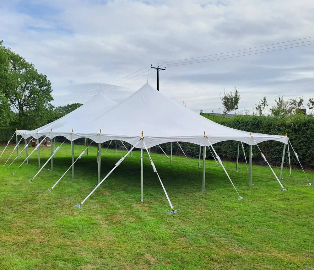 Introducing for 2026, our wonderful, brand new Deluxe Marquees are available in either 9m x 12m with a single centre king pole or 9m x 18m with twin king poles. With a 6.1m height at the top of the king poles and over 2m entrance height, this fantastic structure gives that feeling of space and openness as soon as you step inside.